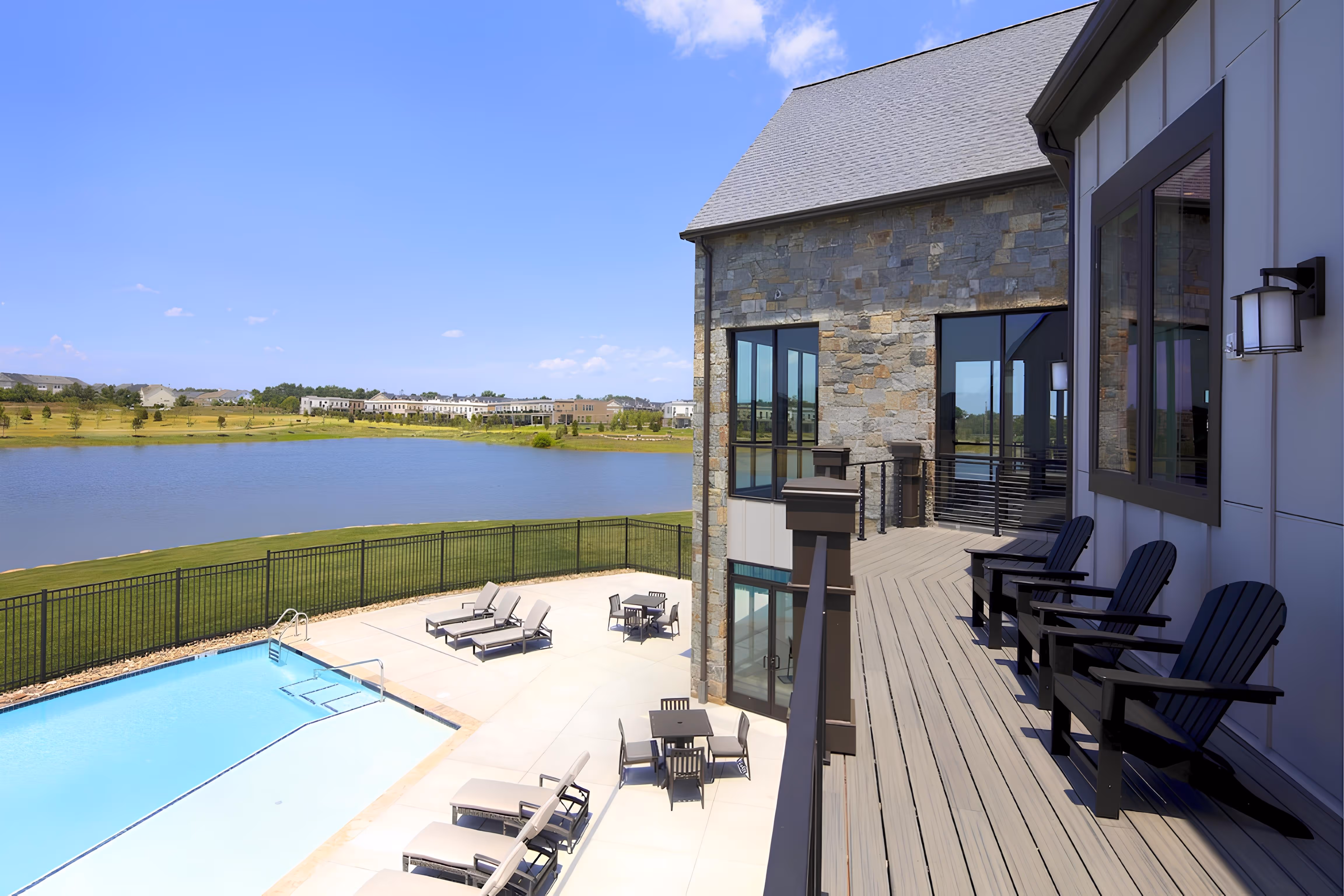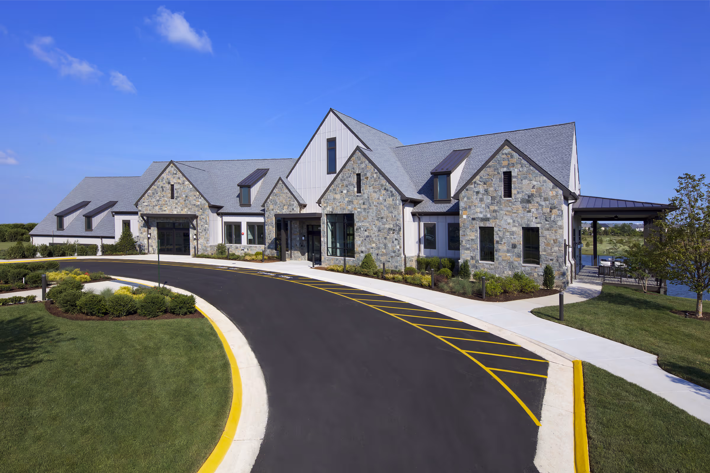 TRINITY was contracted by the Brambleton Development Group to construct a new Community Clubhouse, covering approximately 17,000 square feet, in a newly developed retirement community in Brambleton, Virginia. This clubhouse offers a variety of amenities, including administrative offices for property management, a full kitchen and dining room, a private movie theater, an art studio, a yoga studio, a gym, an Olympic-sized indoor swimming pool, outdoor lounge areas, a lounging pool, and tennis courts. The building was constructed with a blend of wood and metal framing, finished with a vinyl and stone veneer.